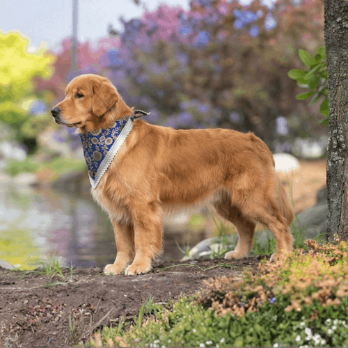 Give your pet a royal and stylish touch with this beautifully designed dog bandana. Featuring a rich blue colour, elegant traditional prints, and a refined border, this bandana is perfect for festive occasions, special outings, and photoshoots.