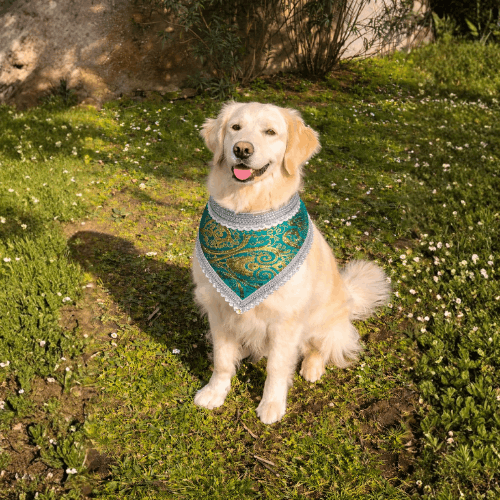 Add a pop of color and tradition to your pet’s look with this beautifully printed dog bandana. Featuring a rich multicolor ethnic pattern with a bold red border, this bandana is perfect for festive occasions, outdoor walks, and adorable photoshoots.